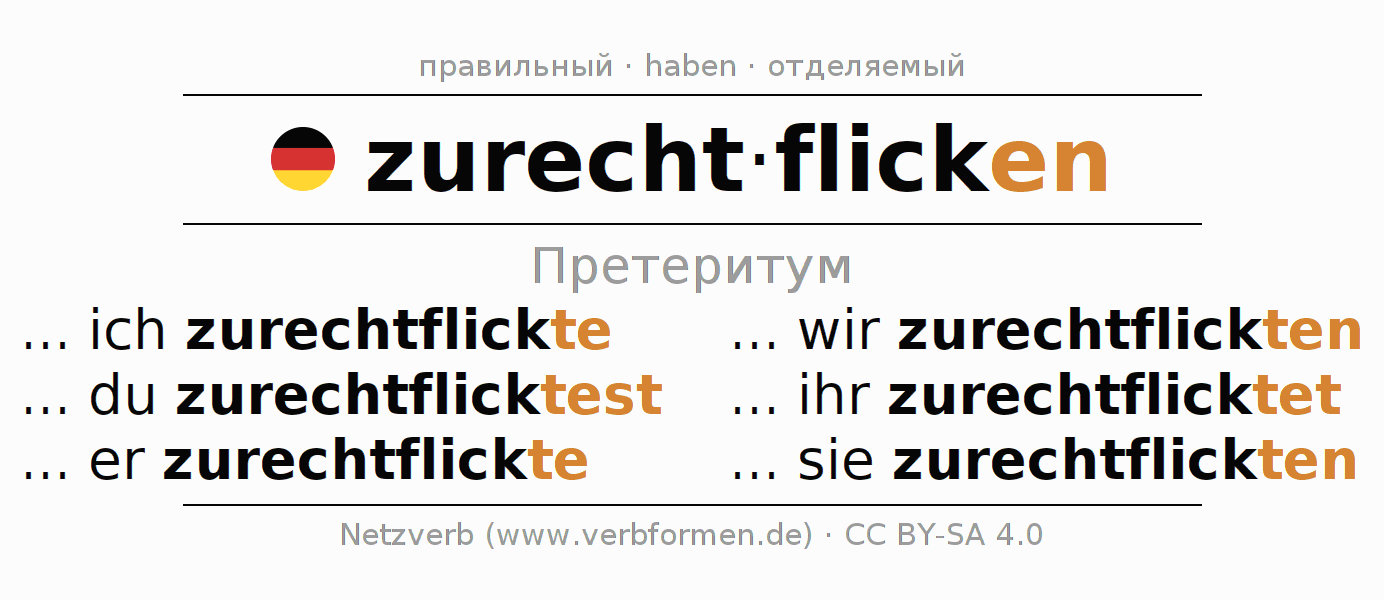 - Как спрягается zurechtflicken в Претеритум?