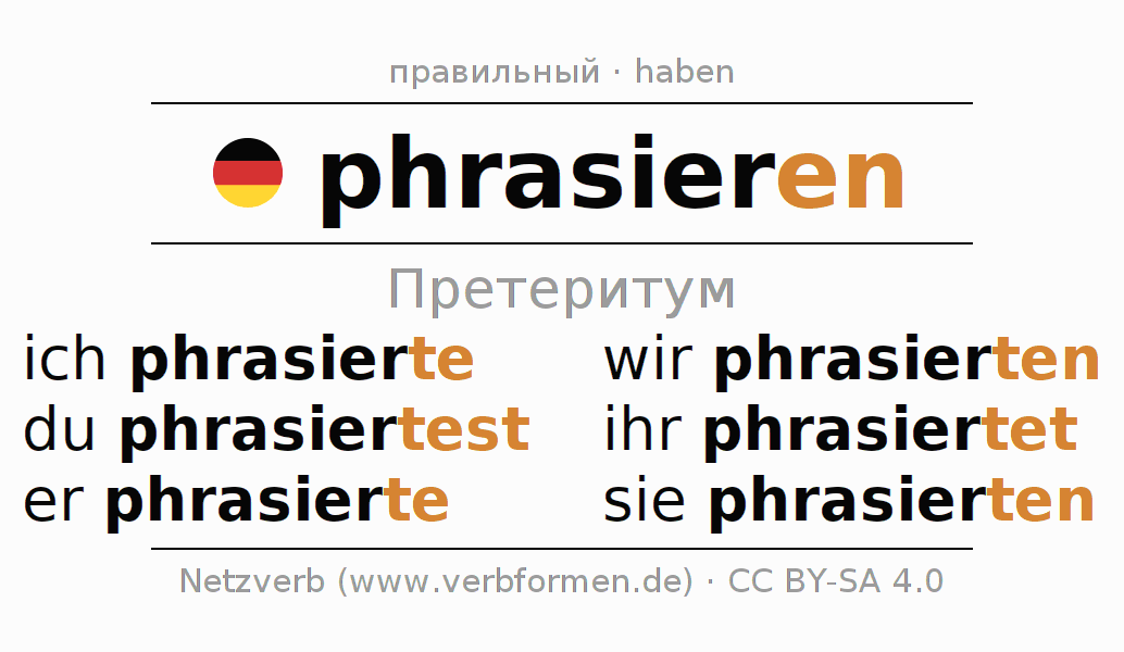 Этот глагол phrasieren полностью спрягается во всех лицах и числах Претеритум Индикатив.