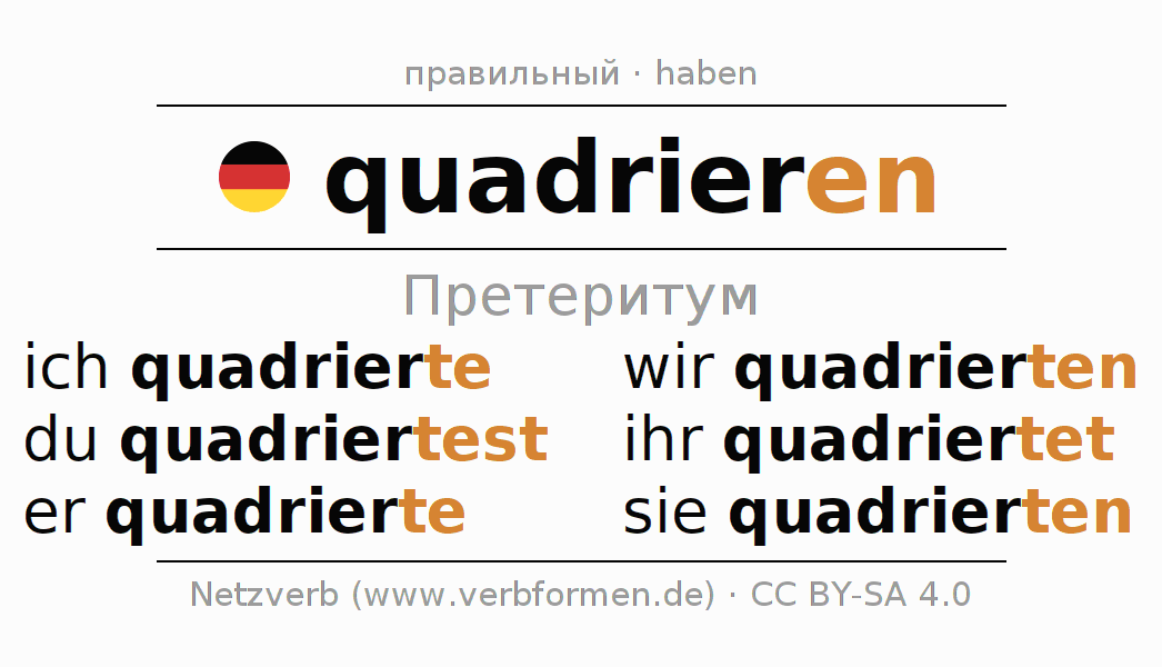 Этот глагол quadrieren полностью спрягается во всех лицах и числах Претеритум Индикатив.