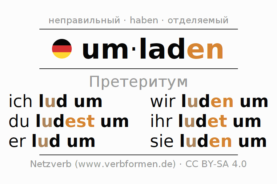 - Как спрягается umladen в Претеритум?