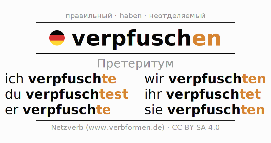 - ich verpfuschte (1-е лицоЕдинственное число)