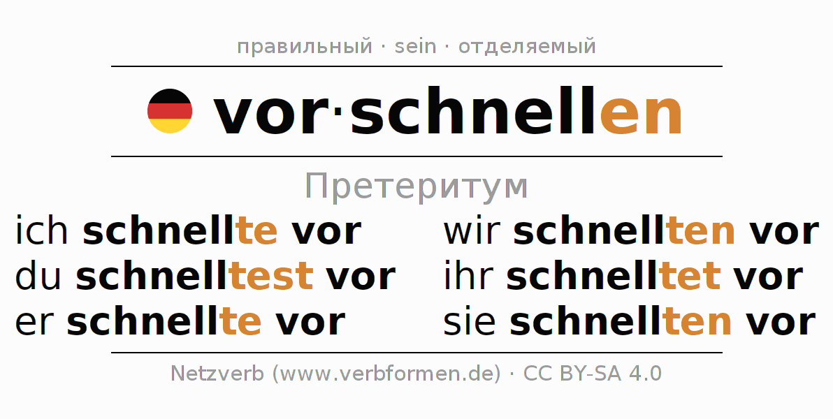 Этот глагол vorschnellen полностью спрягается во всех лицах и числах Претеритум Индикатив.