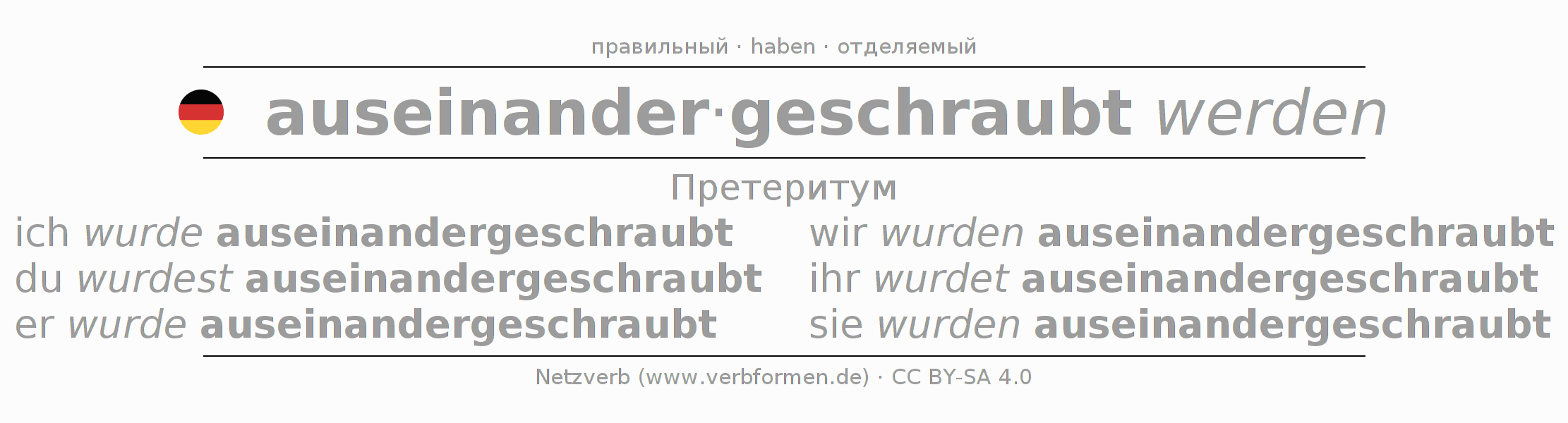 - ich wurde auseinandergeschraubt (1-е лицоЕдинственное число)