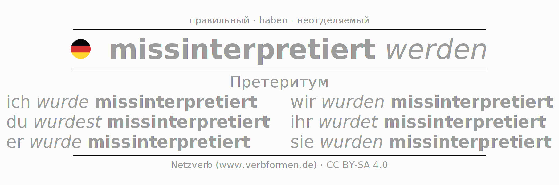 Этот глагол missinterpretieren полностью спрягается во всех лицах и числах Претеритум Индикатив.