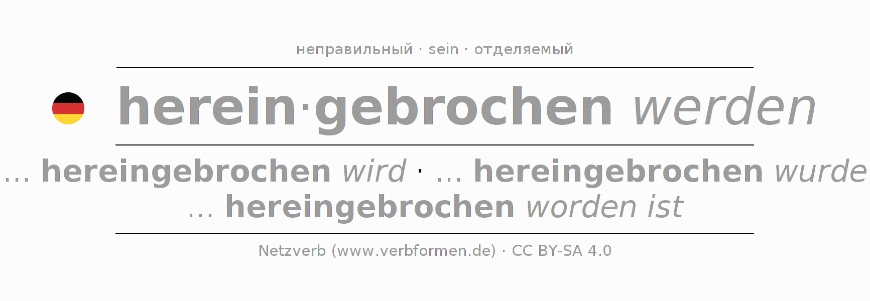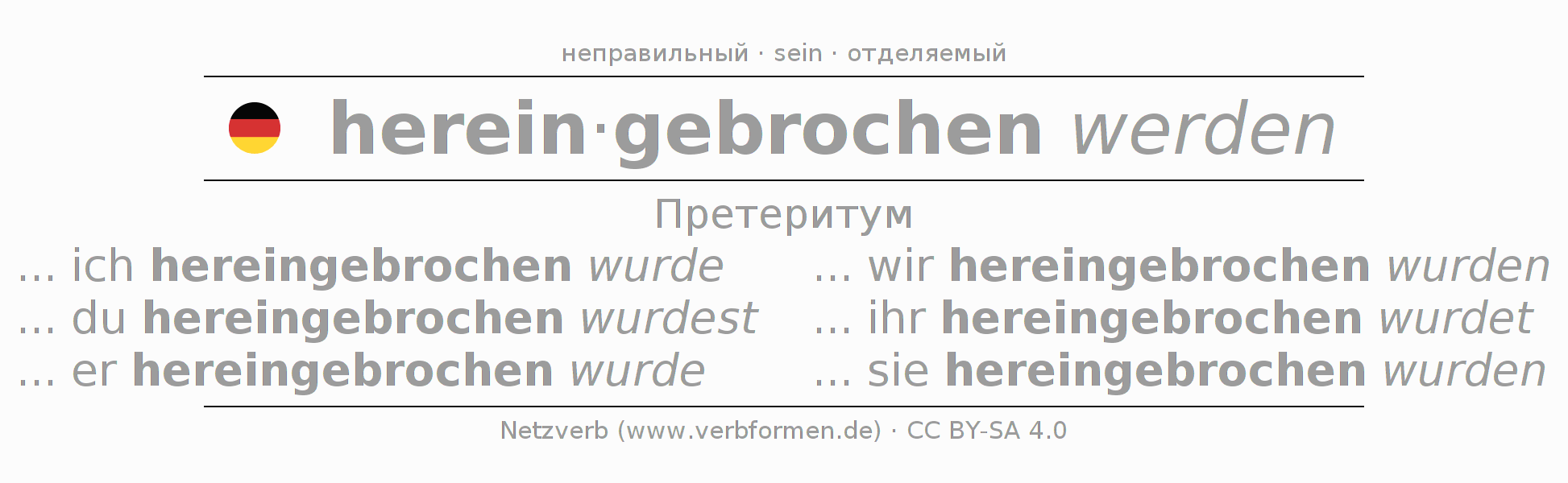 - Образование Партицип hereinbrechen