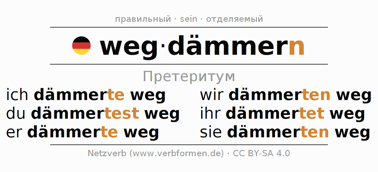 - ich dämmerte weg (1-е лицоЕдинственное число)