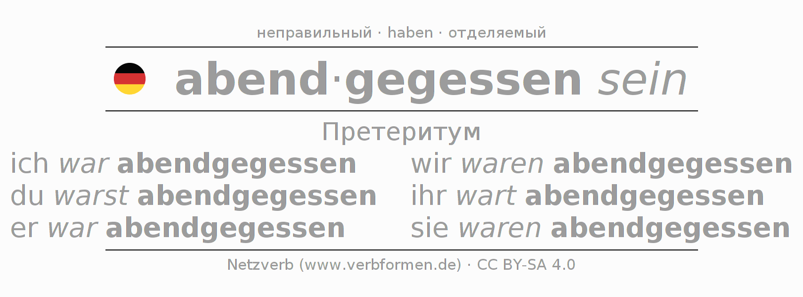 Этот глагол abendessen полностью спрягается во всех лицах и числах Претеритум Индикатив.