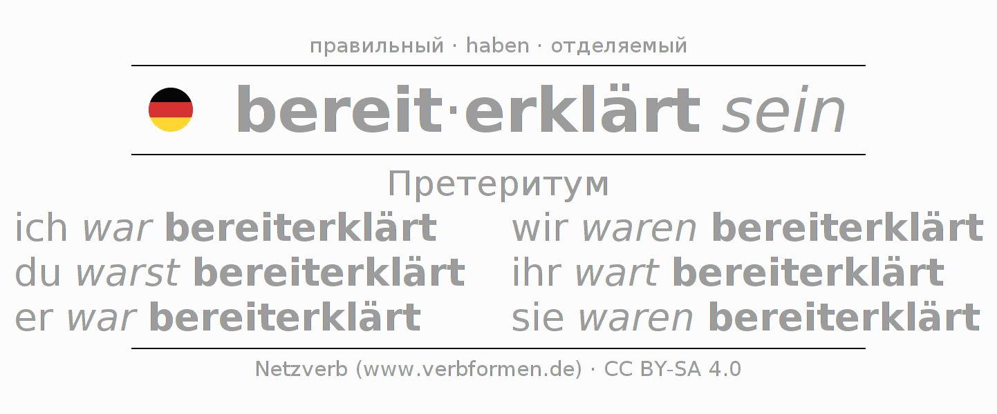 - ich war bereiterklärt (1-е лицоЕдинственное число)