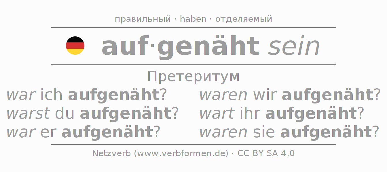 - war ich aufgenäht? (1-е лицоЕдинственное число)