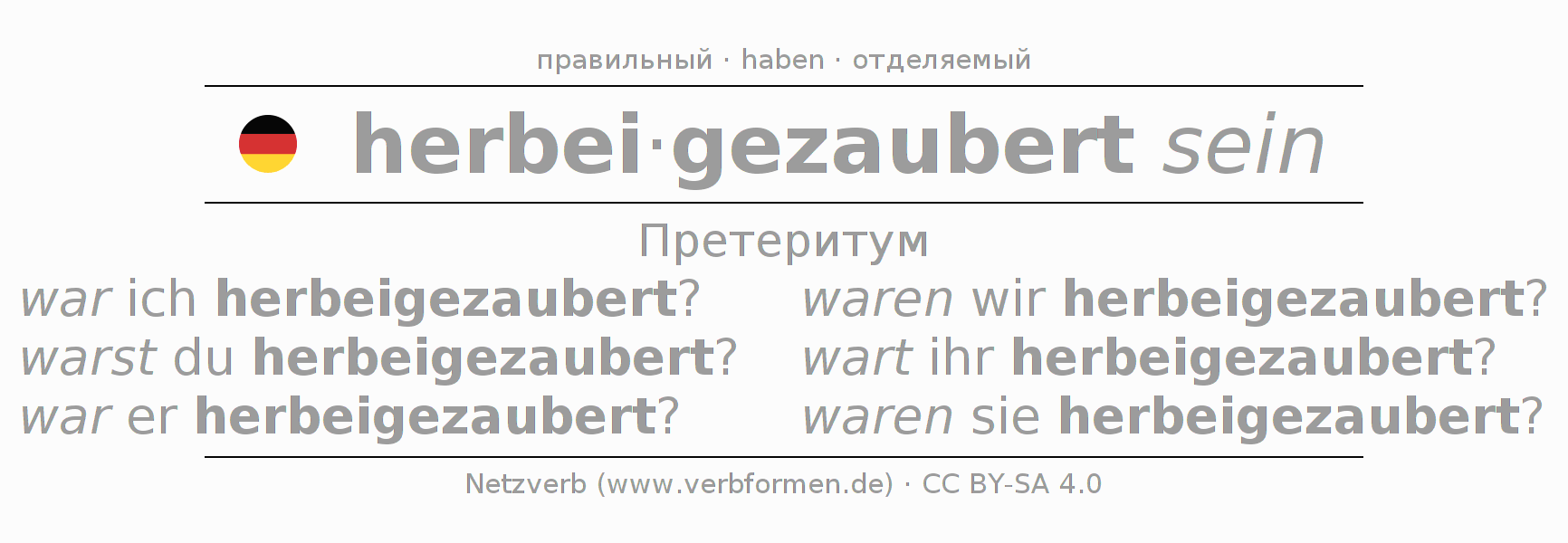 Этот глагол herbeizaubern полностью спрягается во всех лицах и числах Претеритум Индикатив.