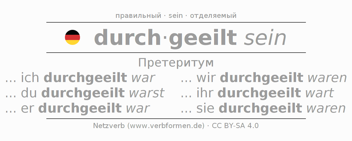 - ... er durchgeeilt war (3-е лицоЕдинственное число)
