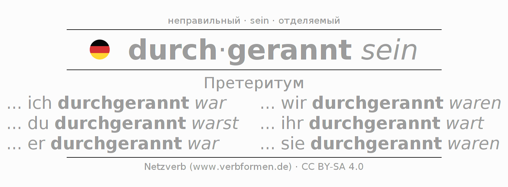 - ... er durchgerannt war (3-е лицоЕдинственное число)