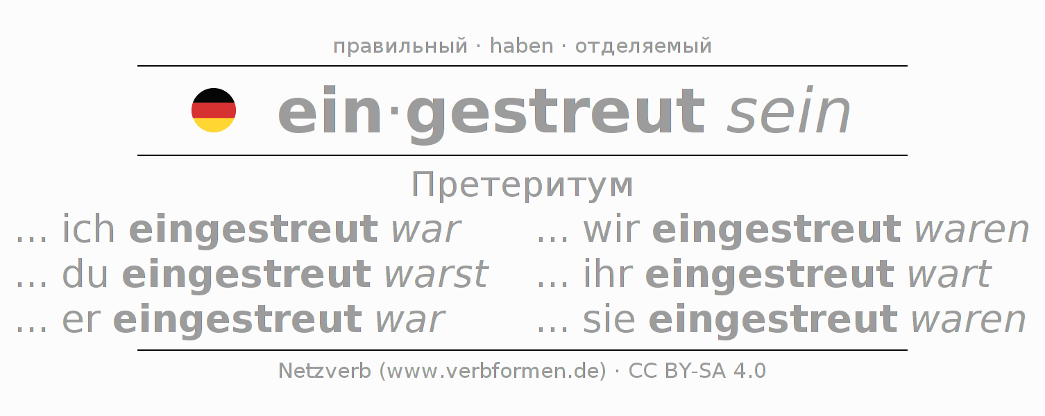 Этот глагол einstreuen полностью спрягается во всех лицах и числах Претеритум Индикатив.