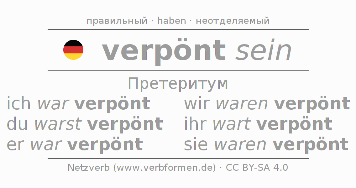 Этот глагол verpönen полностью спрягается во всех лицах и числах Претеритум Индикатив.