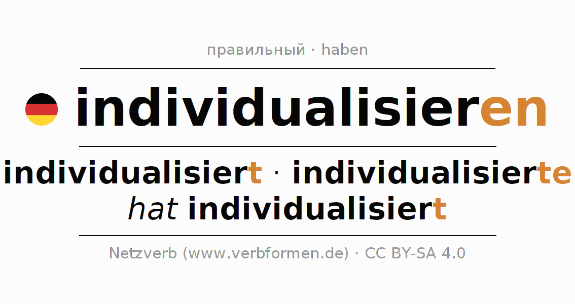 - Презенс: individualisier(e) (du), individualisieren wir, individualisiert (ihr), individualisieren Sie