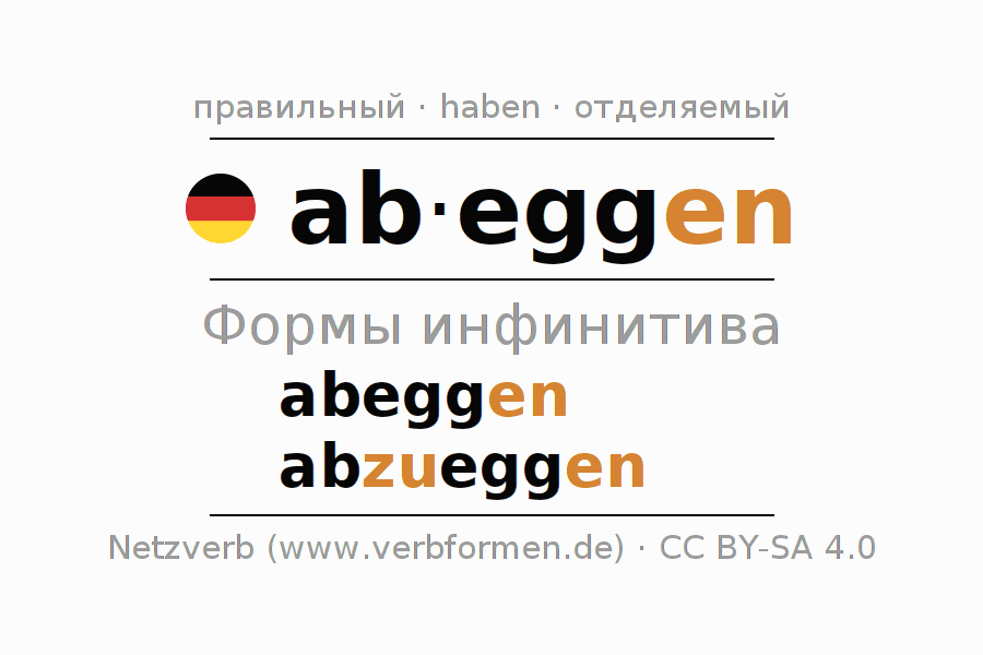 Этот глагол abeggen полностью спрягается во всех лицах и числах Инфинитив Презенс Перфект.