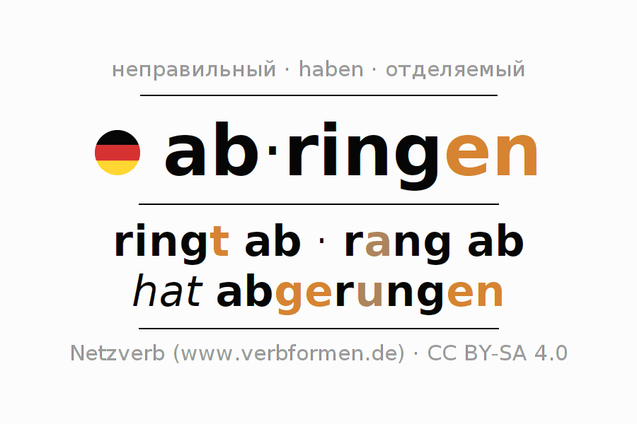 Этот глагол abringen полностью спрягается во всех лицах и числах Инфинитив Презенс Перфект.