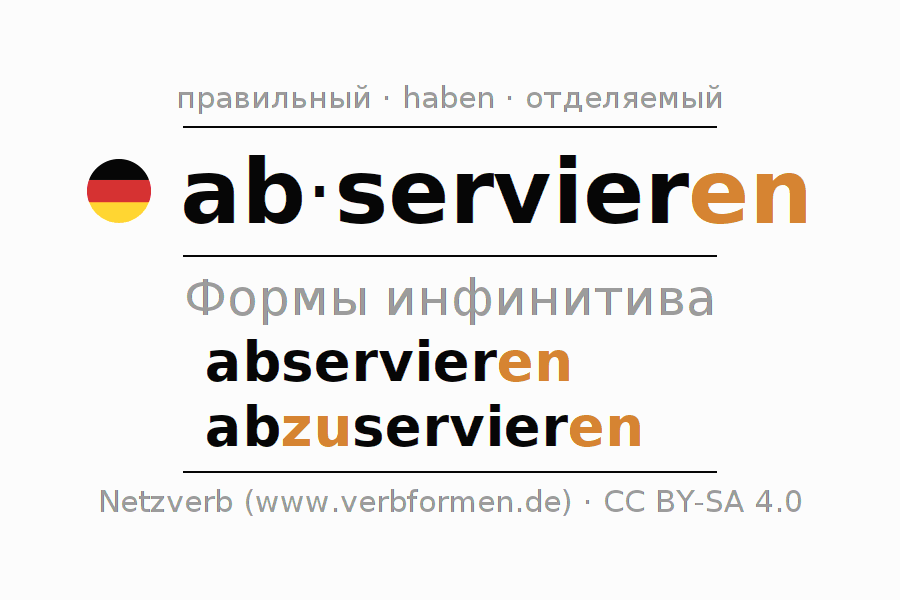 Инфинитивы abservieren (убирать, убрать со стола): abservieren, abzuservieren