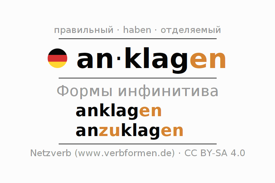 - Образование Инфинитив anklagen