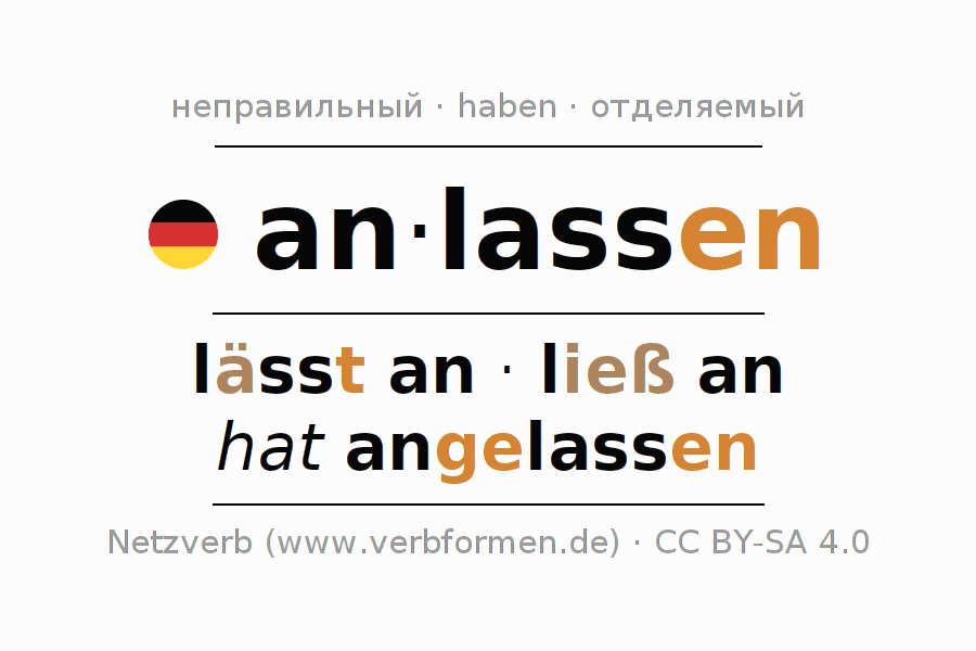 Этот глагол anlassen полностью спрягается во всех лицах и числах Инфинитив Презенс Перфект.