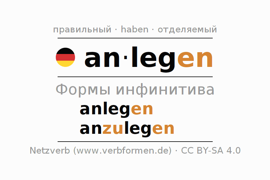 Этот глагол anlegen полностью спрягается во всех лицах и числах Инфинитив Презенс Перфект.
