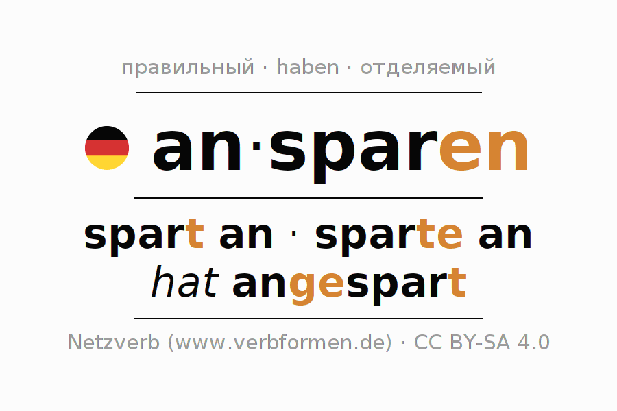 Этот глагол ansparen полностью спрягается во всех лицах и числах Инфинитив Презенс Перфект.
