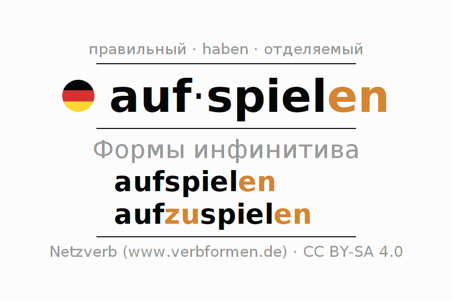 Примеры Действительный залог (актив) Инфинитив глагола aufspielen