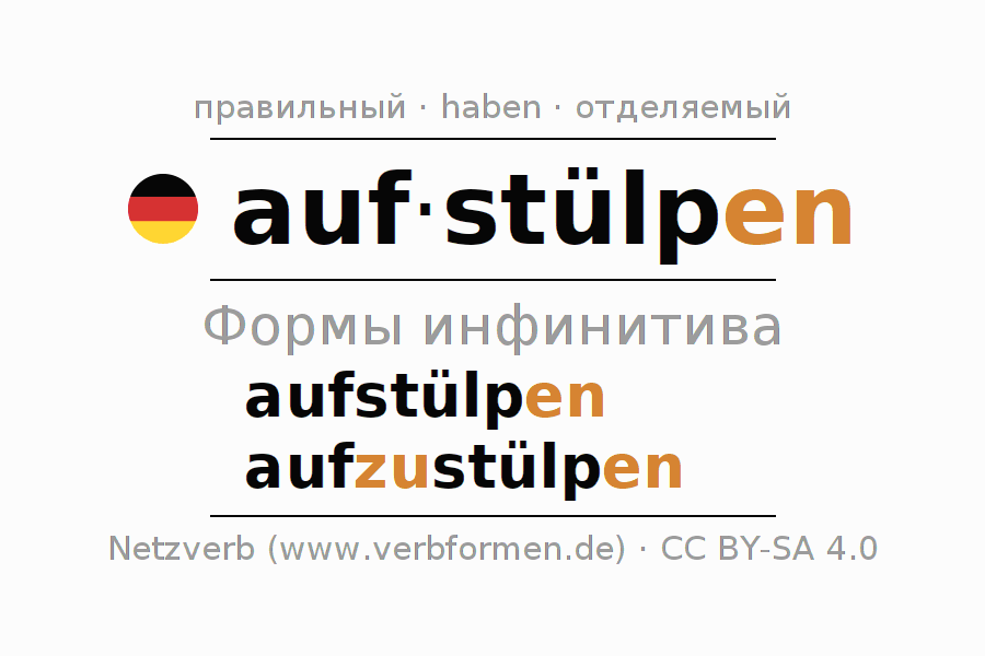 Этот глагол aufstülpen полностью спрягается во всех лицах и числах Инфинитив Презенс Перфект.