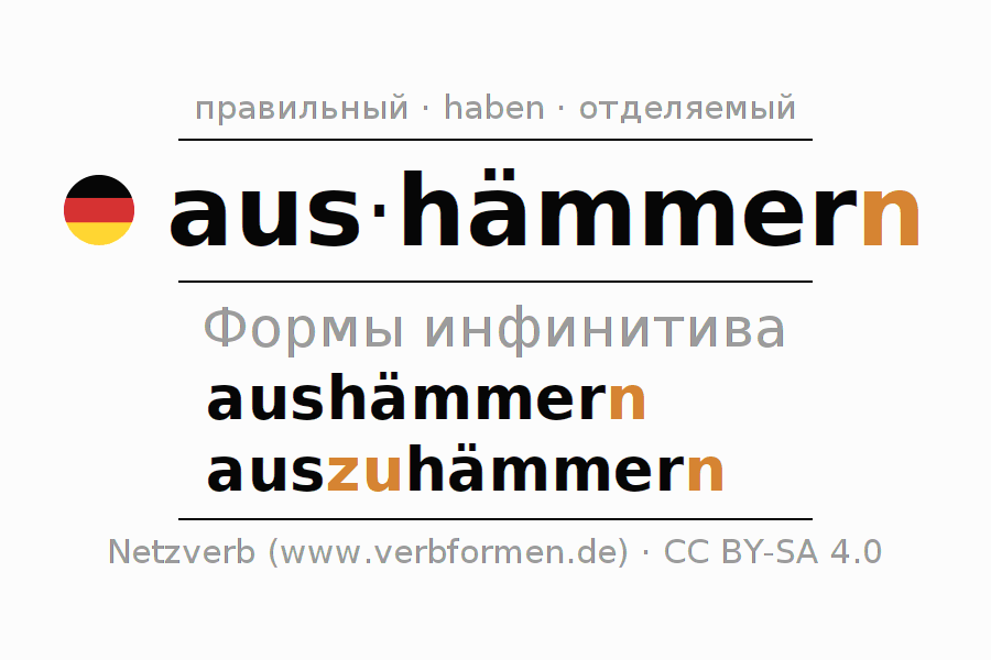 Этот глагол aushämmern полностью спрягается во всех лицах и числах Инфинитив Презенс Перфект.