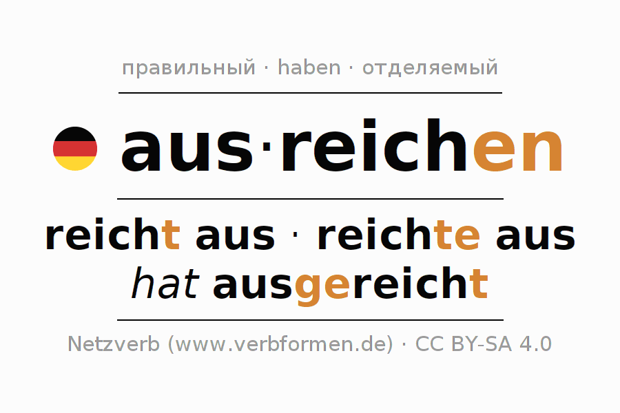 Этот глагол ausreichen полностью спрягается во всех лицах и числах Инфинитив Презенс Перфект.