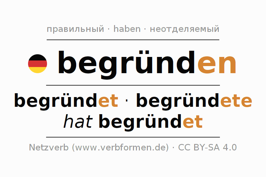 Этот глагол begründen полностью спрягается во всех лицах и числах Инфинитив Презенс Перфект.