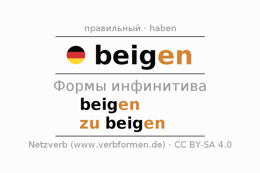 Этот глагол beigen полностью спрягается во всех лицах и числах Инфинитив Презенс Перфект.