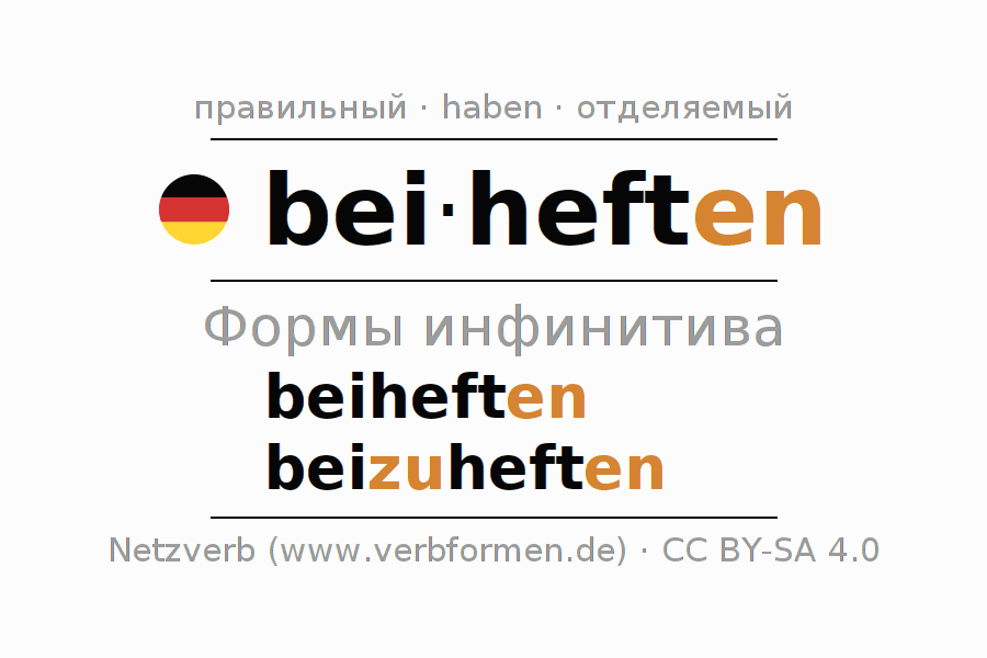 Инфинитивы beiheften (прикрепление, прикреплять): beiheften, beizuheften