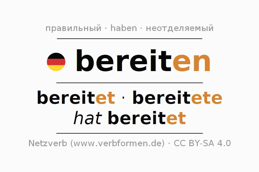 Этот глагол bereiten полностью спрягается во всех лицах и числах Инфинитив Презенс Перфект.