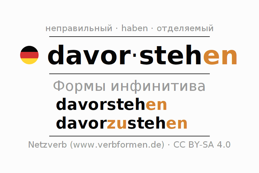 Этот глагол davorstehen полностью спрягается во всех лицах и числах Инфинитив Презенс Перфект.