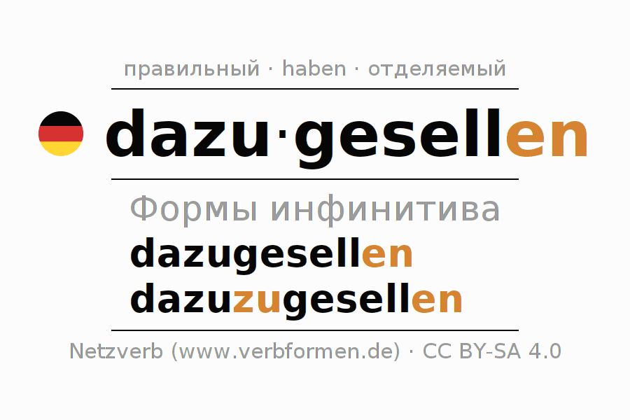 Инфинитивы dazugesellen (присоединиться, присоединяться): dazugesellen, dazuzugesellen