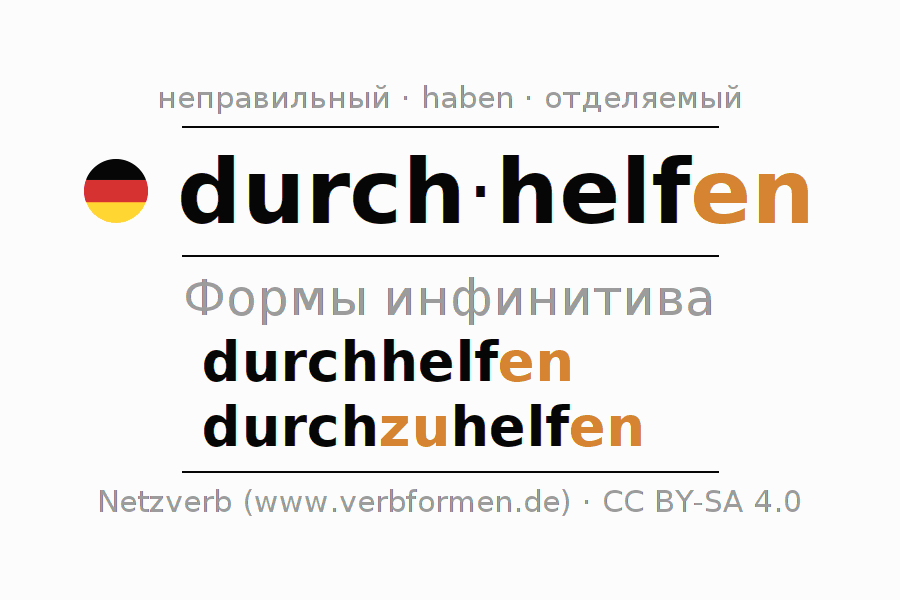 Этот глагол durchhelfen полностью спрягается во всех лицах и числах Инфинитив Презенс Перфект.