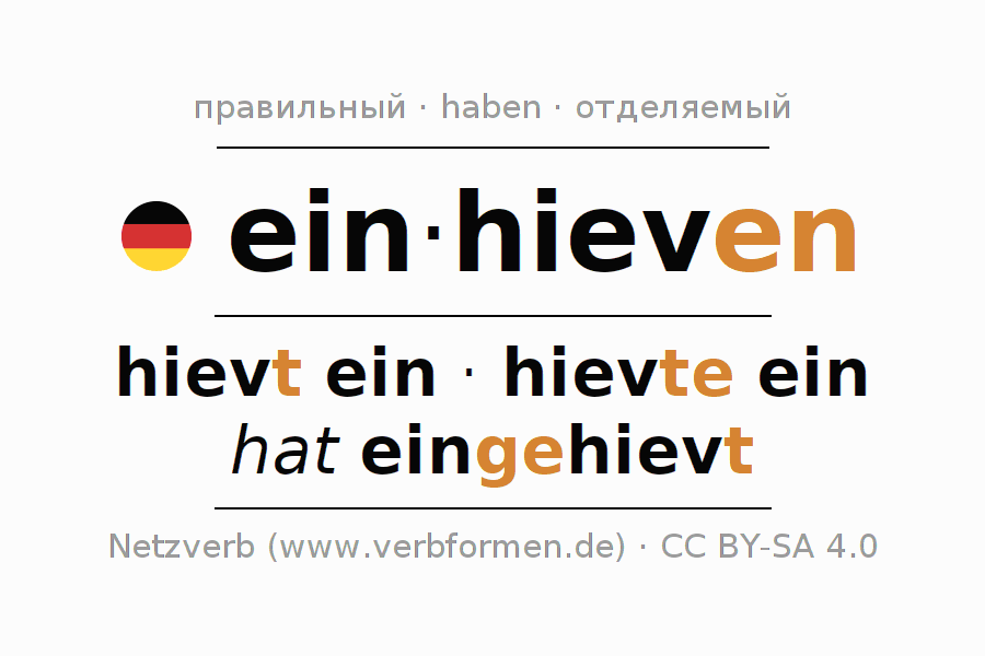 Этот глагол einhieven полностью спрягается во всех лицах и числах Инфинитив Презенс Перфект.