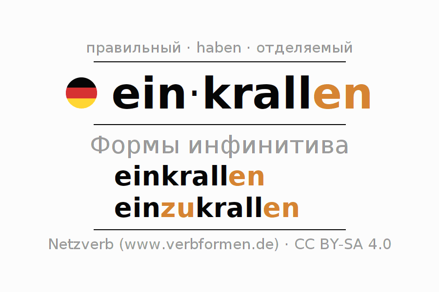 Этот глагол einkrallen полностью спрягается во всех лицах и числах Инфинитив Презенс Перфект.