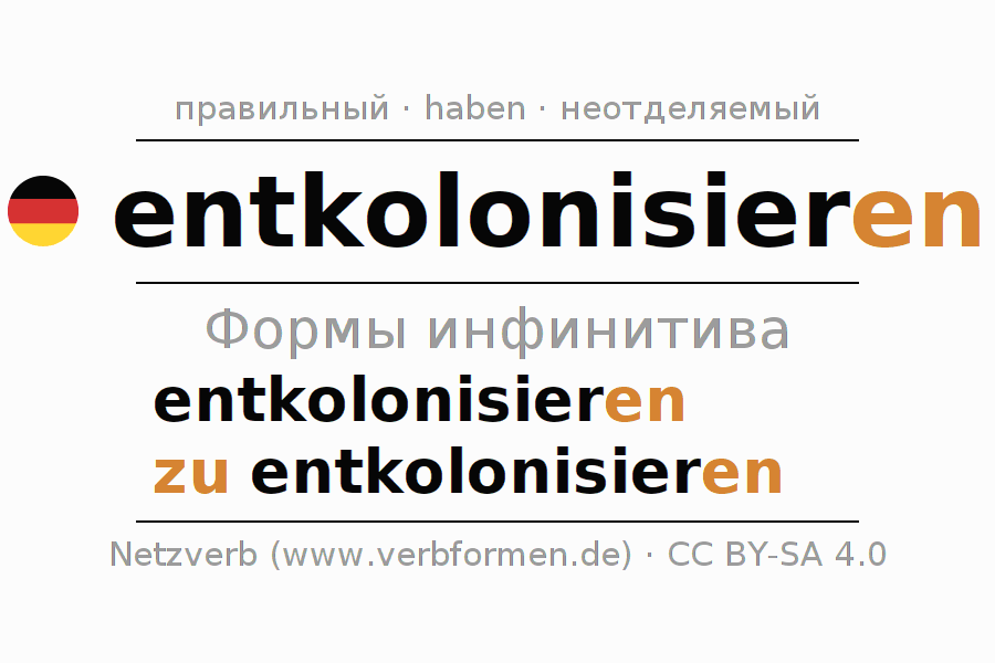 Инфинитивы entkolonisieren (деколонизировать): entkolonisieren, zu entkolonisieren