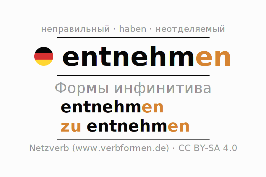 - Образование Инфинитив entnehmen