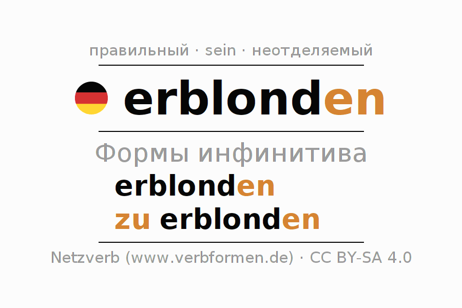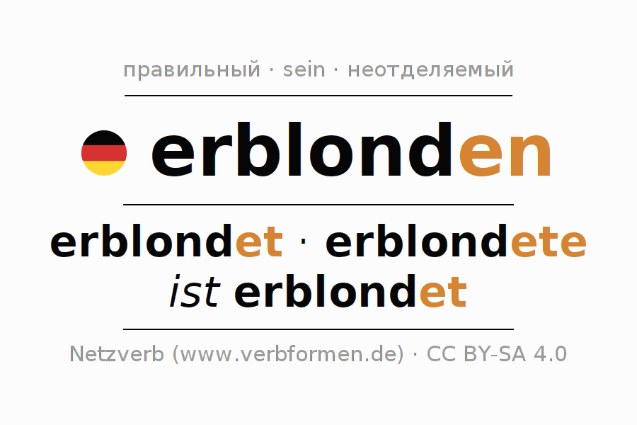 Этот глагол erblonden полностью спрягается во всех лицах и числах Инфинитив Презенс Перфект.