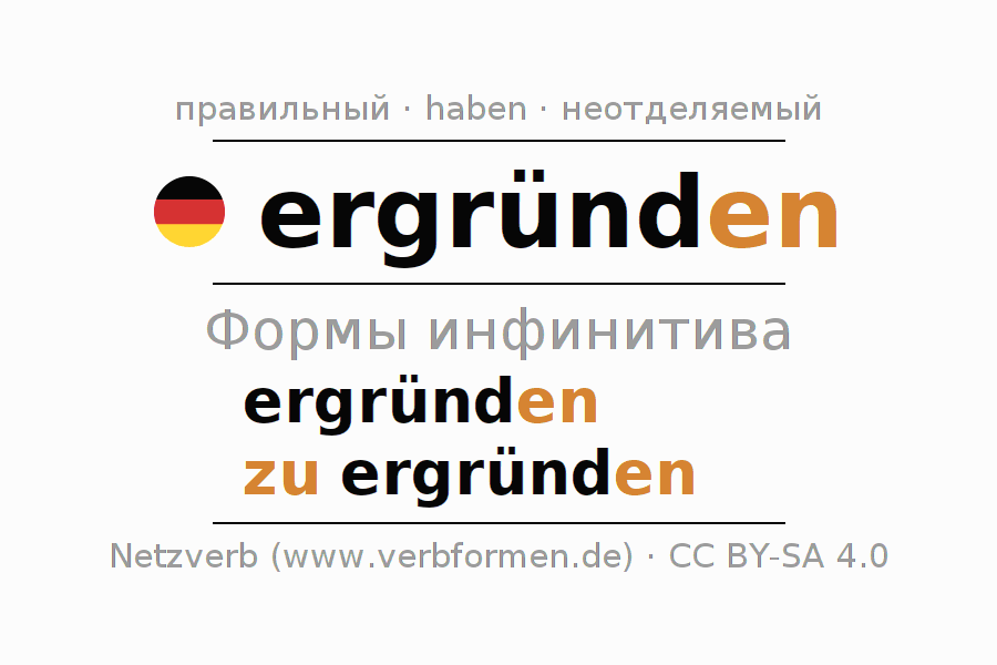 Этот глагол ergründen полностью спрягается во всех лицах и числах Инфинитив Презенс Перфект.