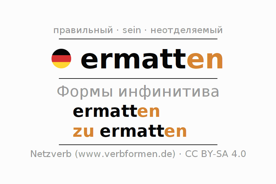 Этот глагол ermatten (ist) полностью спрягается во всех лицах и числах Инфинитив Презенс Перфект.