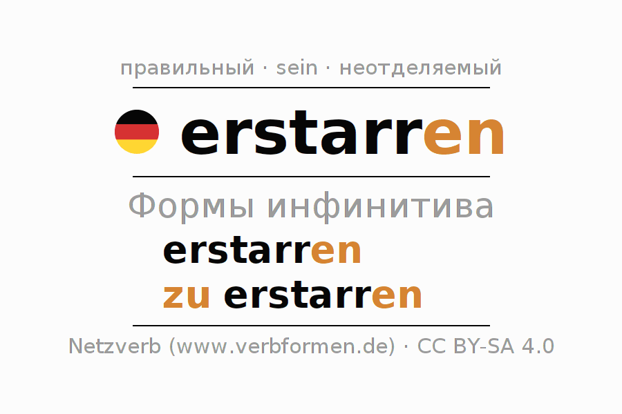 Этот глагол erstarren полностью спрягается во всех лицах и числах Инфинитив Презенс Перфект.