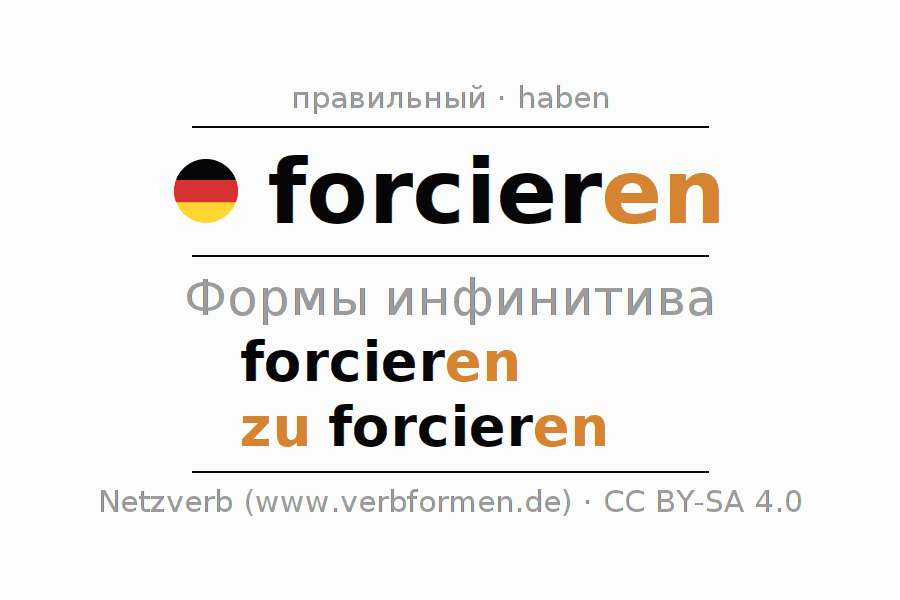 Этот глагол forcieren полностью спрягается во всех лицах и числах Инфинитив Презенс Перфект.