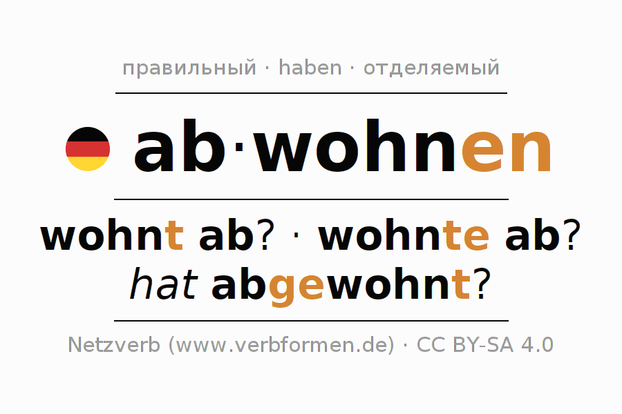 Этот глагол abwohnen полностью спрягается во всех лицах и числах Инфинитив Презенс Перфект.