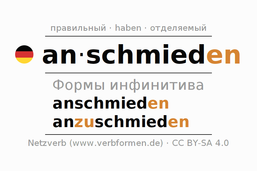 - Как спрягается anschmieden в Инфинитив?