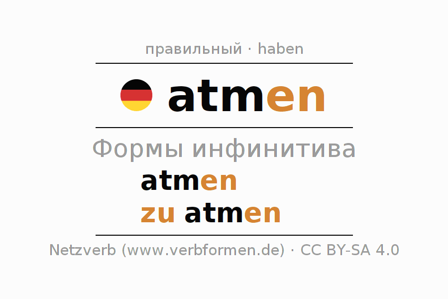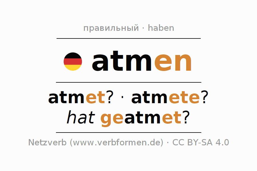 Этот глагол atmen полностью спрягается во всех лицах и числах Инфинитив Презенс Перфект.