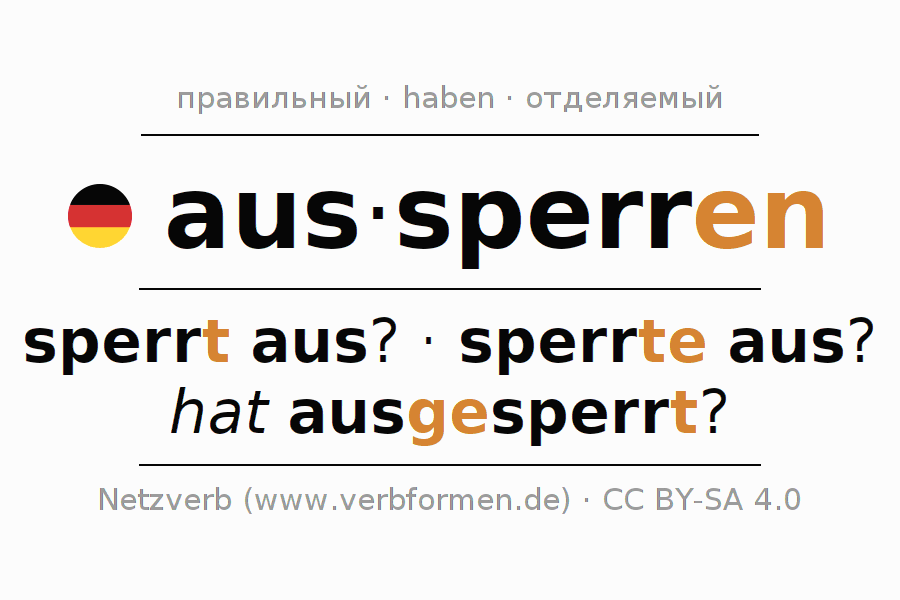 Этот глагол aussperren полностью спрягается во всех лицах и числах Инфинитив Презенс Перфект.